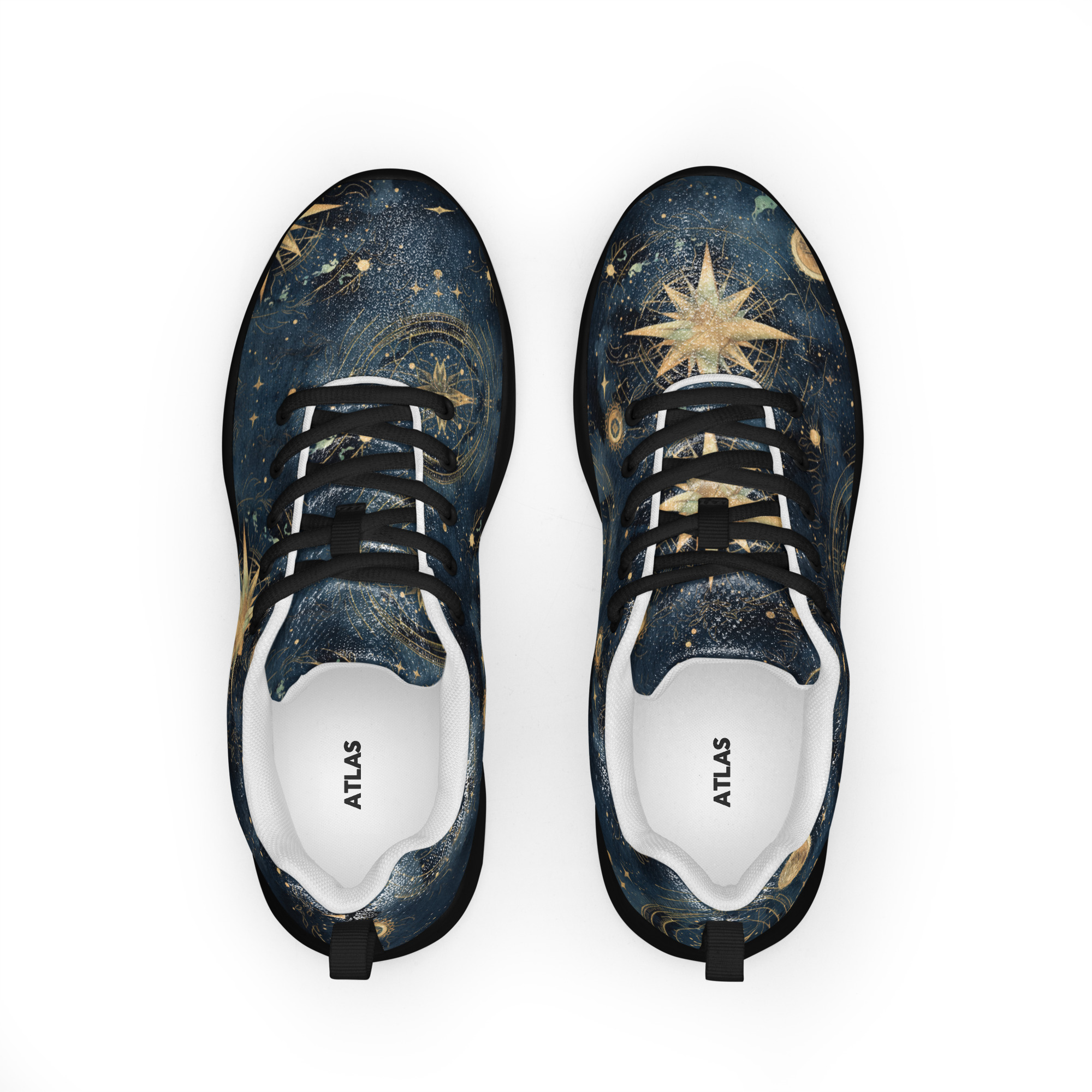 Celestial map and compass design in shimmering gold tones